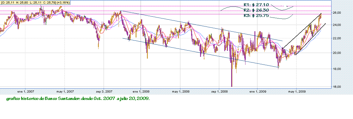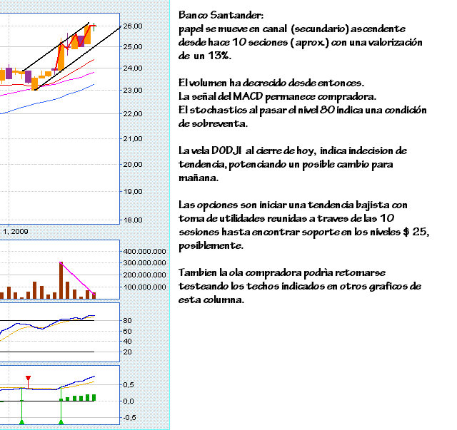 por lo tanto me he permitido elegir este papel, BANCO SANTANDER, para aplicar y compartir toda la educacion que he ganado en este FORO.