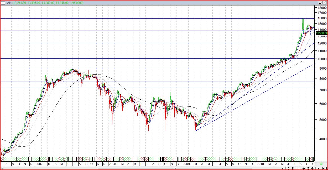Sì, si tienes razón.....si lo mejor hubiera sido ingresar alrededor de los 8000 y colocar el stop en 7500 (debajo de la media) y que es la ultima correccion impte. pero bueno, por eso pedía una opinion.......me quedó claro que al nivel que entré sobre 9100................una opción serían los 8500,(o un poco menos, si lo sitúo debajo la media) o los 9000 o los 9400 que me señala erwin.....aunque en este caso estén sobre la media, pero que son los ultimos suelos visibles (en grafico de velas).........graciaas de nuevo. y saludos