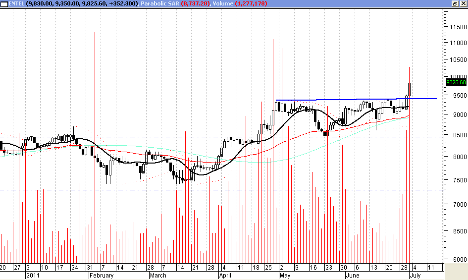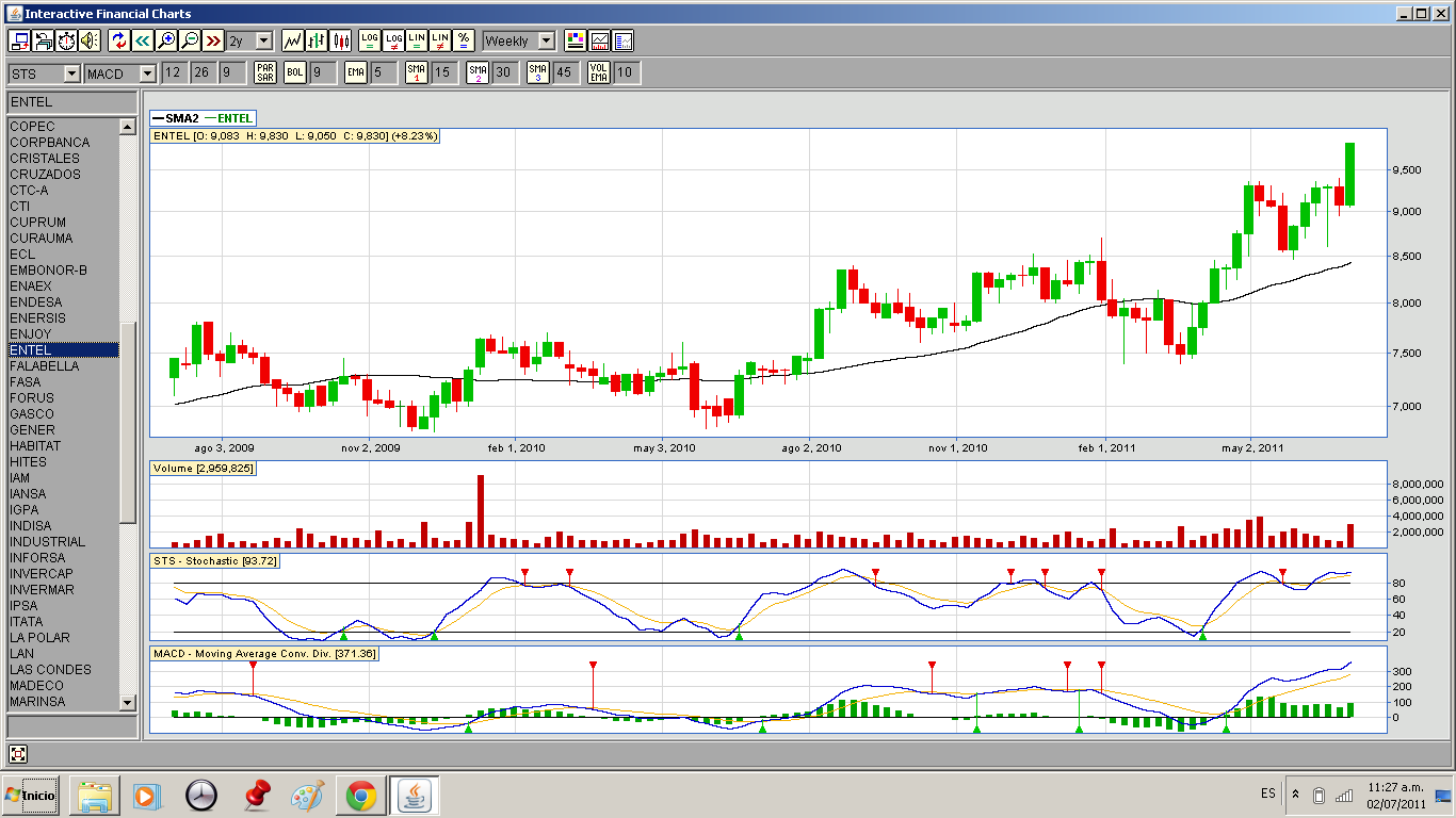 el caso de Entel, es diferente, la tendencia es alcista, hace años que no se movía, todos saben que es un papel tortuga, no tengo idea, que tan buena sea la empresa, en el fondo, más allá de que siempre entrega buenos dividendos, y que su roe anual es de un 15-20%, que hay rumores de que quiere ser adquirida, que igual tiene sus proyectos, que pertenece al sector tecnología , que hay un boom de nuevo en EEUU con el tema de las redes sociales, que la gente se capacita por elearnig,etc.