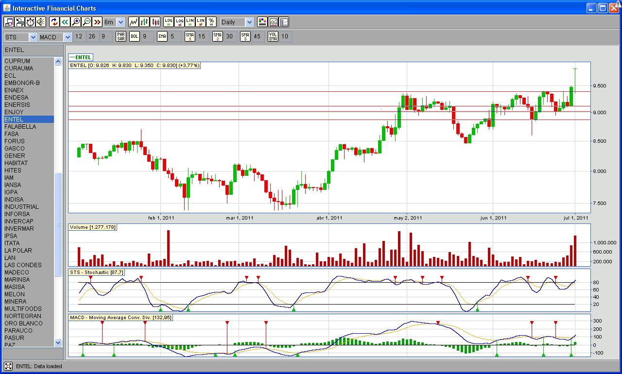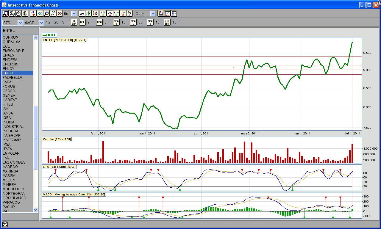 Me metí a Entel, a 9.100 con Stop de 7.500.........que es bajo la MM30................el tema es ¿existirà otro Stop más adecuado que pudiera colocar como para proteger la ganancia obtenida hasta ahora?........................¿como se podría colocar este stop?................¿cual pudiera ser un stop adecuado entre el cierre de hoy y los 9.100?