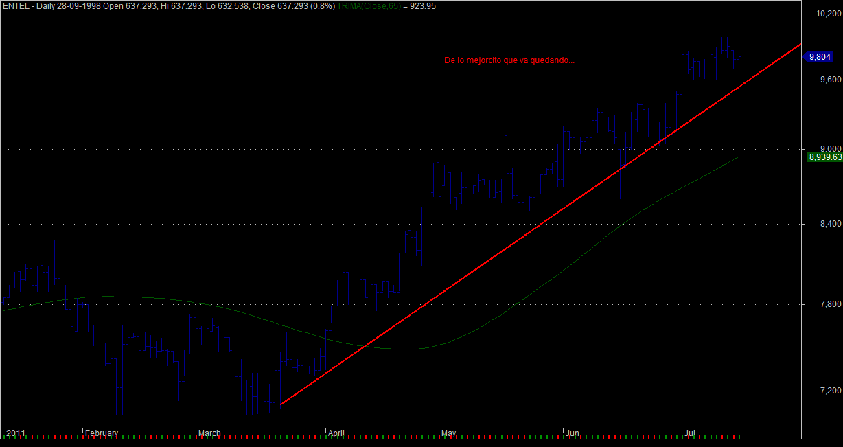 ENTEL se encuentra situado en la parte inferior de su canal alcista.
