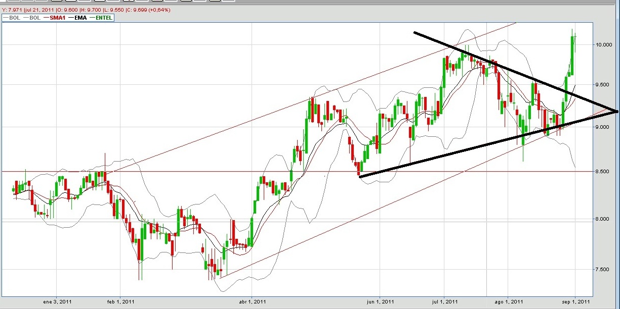 Que ENTEL acaba de romper su linea de tendencia alcista...
