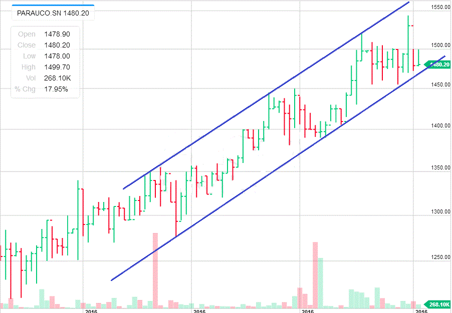 Personalmente me ha costado utilizar LTs en PARAUCO en este último tiempo porque rompió la que venía siguiendo (en D) así que ahora me estoy guiando por Ichimoku que muestra debilidad en la tendencia alcista y soportes en $ 1.515 y $ 1.504 app. (kumo) si caemos de los $ 1.504 podría ir derecho a los $ 1.450, por eso decidí quedarme afuera por mientras, igual la miro a diario.