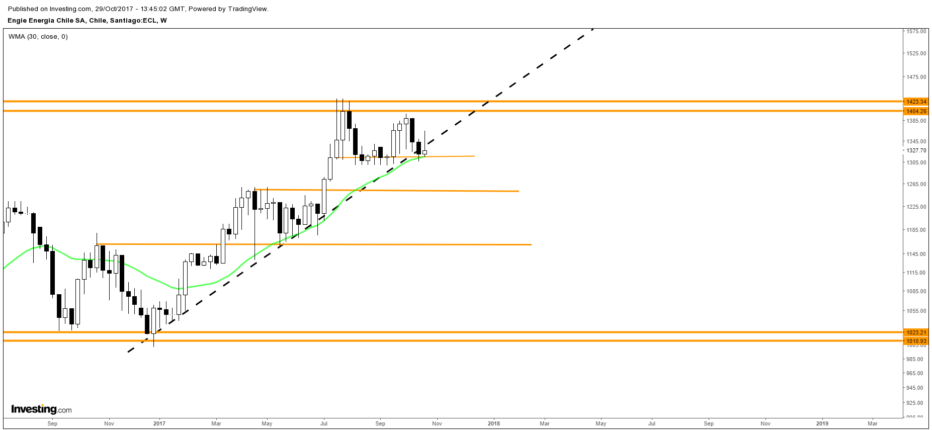 *BCI ve como una buena noticia esta compra de acciones, un 7,23% de la propiedad, mas la participación actual del 52,76% = 59,99% en total. Según BCI, ECL operaba en el corto plazo con un promedio inferior al mercado y podría marcar un piso teórico mejorando el balance riesgo/retorno.