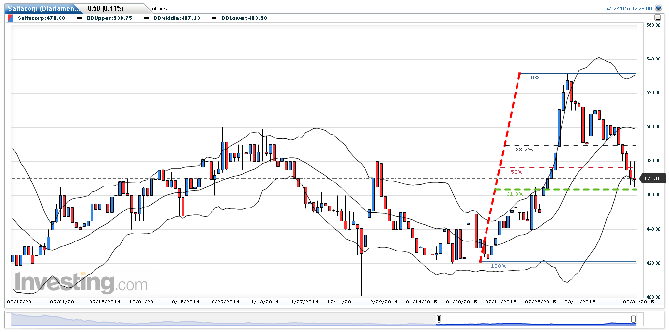 Eso no es una tendencia bajista. De dónde sacaste eso? El mínimos de $420 es la base, luego está el impulso al alza, luego la corrección al nivel de fibonacci que sea (por eso funciona fibonacci, porque te da tantos niveles que, bueno...alguno debe ser, no?). Si para aquí y retoma al alza es , de hecho, una tendencia...no sería la mejor de las pendientes, pero sería tendencia al fin y al cabo...