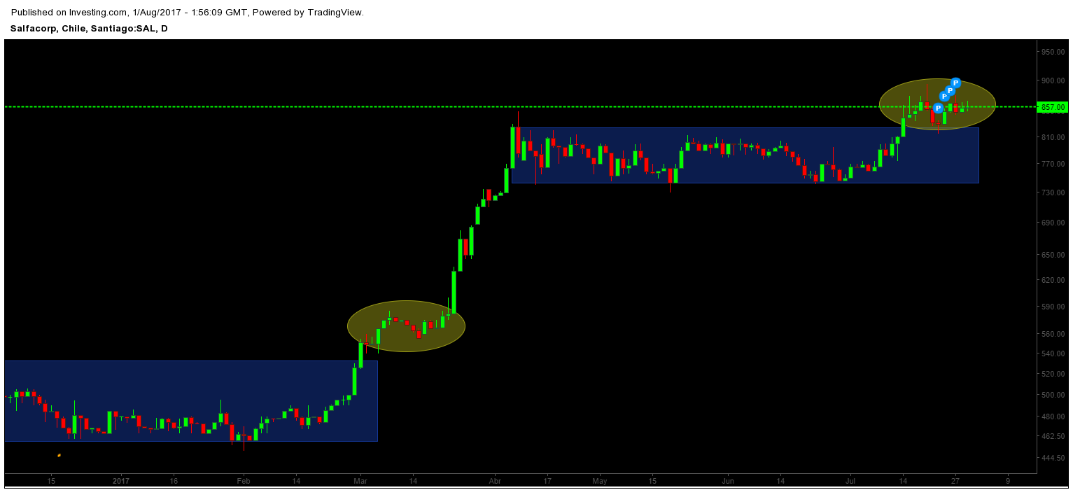 Muchas gracias Retinkudo. Ahora veo peor el escenario, pero comparando el comportamiento en años anteriores, en donde los $850 han servido de resistencia/soporte en muchas ocasiones, llegando a acumular en dicha zona hasta por 5 meses. Esperemos que pronto rompa esa zona, ya que el premio se ve grande.