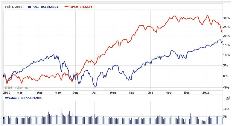 El IPSA Bajo desacoplado, pero es muy difícil que siga bajando cuando el mundo sube, el año pasado cuando se desacoplo se acompañó del MERVAL, este año se acompaña del BOVESPA (esto lo mencione en el post #2733).