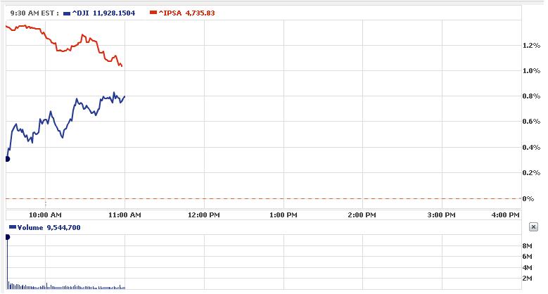 Mientras lo abra el Dow claro que no existirán grandes volúmenes, a esta hora la única referencia son los futuros, los cuales estan verdes.