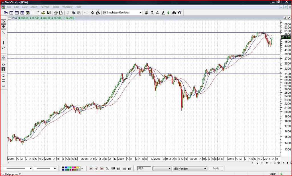Considero que la semana entrante será muy interesante. En gráfico semanal el IPSA al igual que muchos papeles se enfrentarán a su media triangular de 30 semanas y muchos papeles líderes con sus máximas resistencias. De todas formas se ve cierta debilidad en general y habría que ver si las rupturas al alza se dan con gran fuerza o no lo que podría llevar a los papeles a una nueva caída continuando la tendencia bajista... Definitivamente muy entretenidas las semanas por venir...