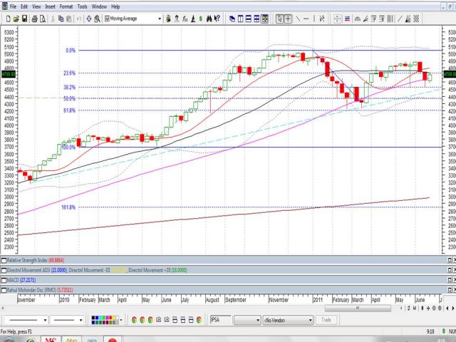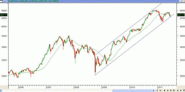 Bueno, según lo que aprecio en el gráfico semanal adjunto, el cierre de semana debiera cerrar hoy sobre los 4730 aprox para superar su Media simple de 30 semanas (color negro). Veremos que pasa hoy.
