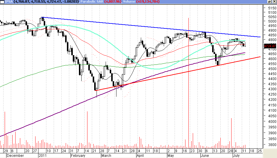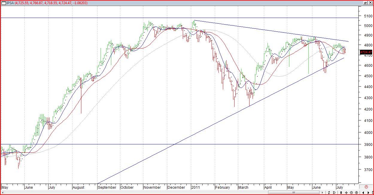 El índice de acciones líderes IPSA cayó cerca de 3% en los primeros seis meses del año, en parte por una toma de ganancias luego de un brillante 2010 en el que trepó más de 37%.