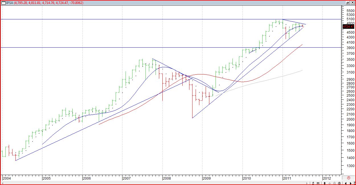 "Nuestra visión para el IPSA es de 5.460 puntos hacia fines del 2011, pero ahora está en revisión por lo que ha sucedido en el último mes", dijo Parra, de la correduría EuroAmerica.