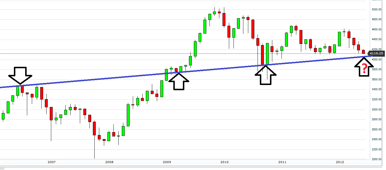 4.- En 2012 entre agosto y noviembre se lateralizo entre 4100 y 4300, lo que permitió acumular energía (ahora aún ello no pasa).