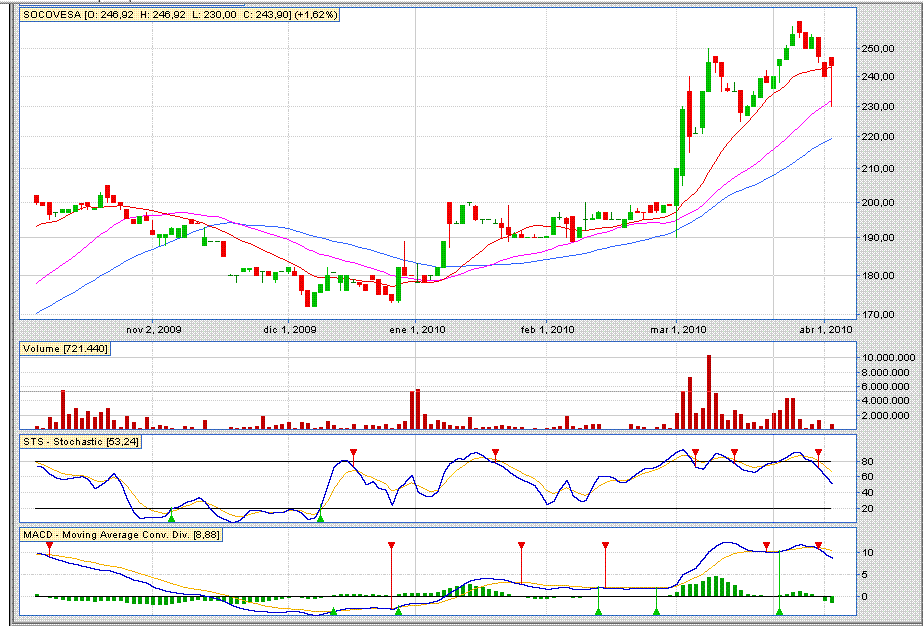 Pero SALFA no es todo. SOCOVESA, hizo la misma gracia, o muy parecida. Llegó a estar a $230 a las 11 de la mañana, para terminar en $243,9 es decir, un +5,7% app. en la subida, incluso teniendo un high de 246,9.