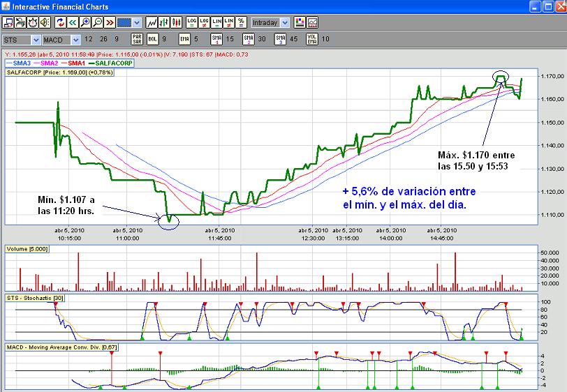 Atentos mañana, a ver cómo sigue la historia. Por ahora, se ve buena señal, interesante también los volumenes de la jornada para este hasta ahora eventual rebote de Salfa.