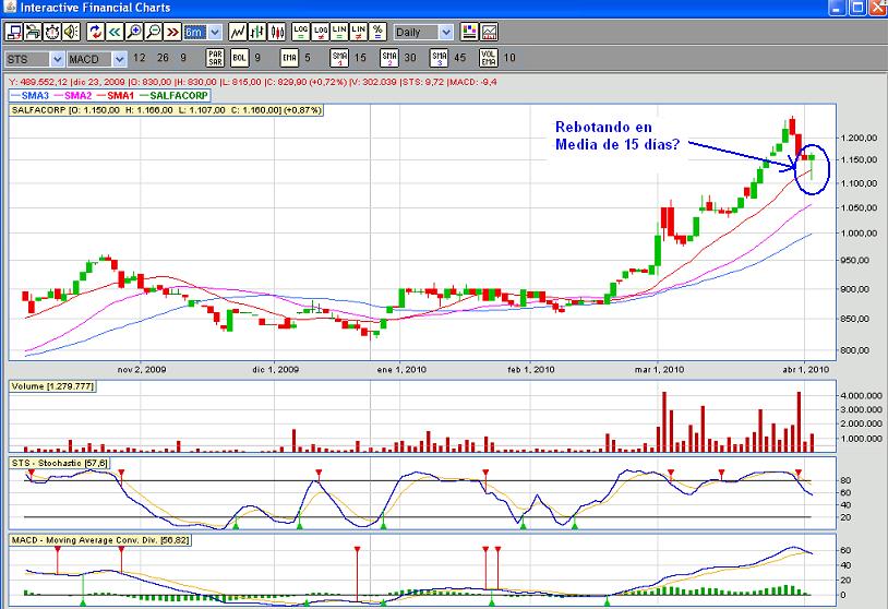 Si hubieses mirado con un poco más de cautela qué es lo que podía hacer Salfa, a lo mejor habrías esperado un tantito, para ver si realmente se iba a ir abajo de su Media de 15 días (0 13, según el gusto), y luego la otra, etc. y así suscesivamente. Hay que ver el comportamiento de los papeles cuando se encuentran en zonas de definición, luego decides tú. ¿me explico?...