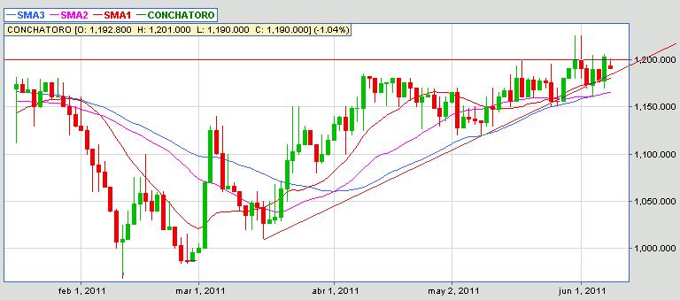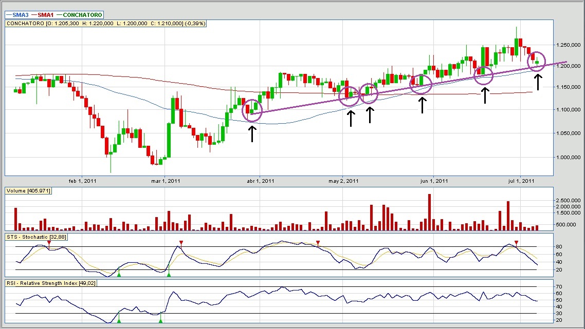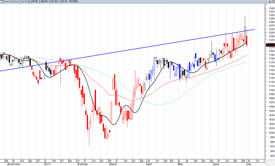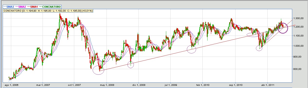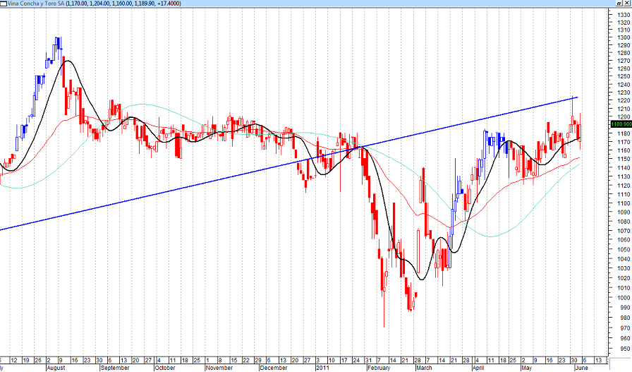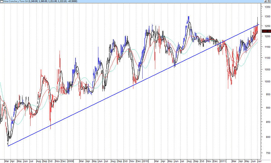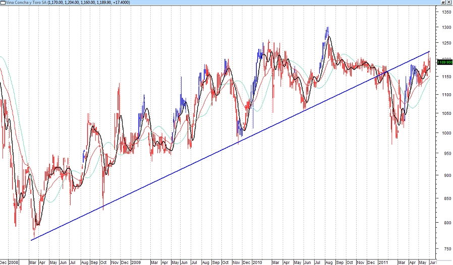 Según lo que yo veo en el gráfico de Concha y Toro, no hay por donde estar adentro...