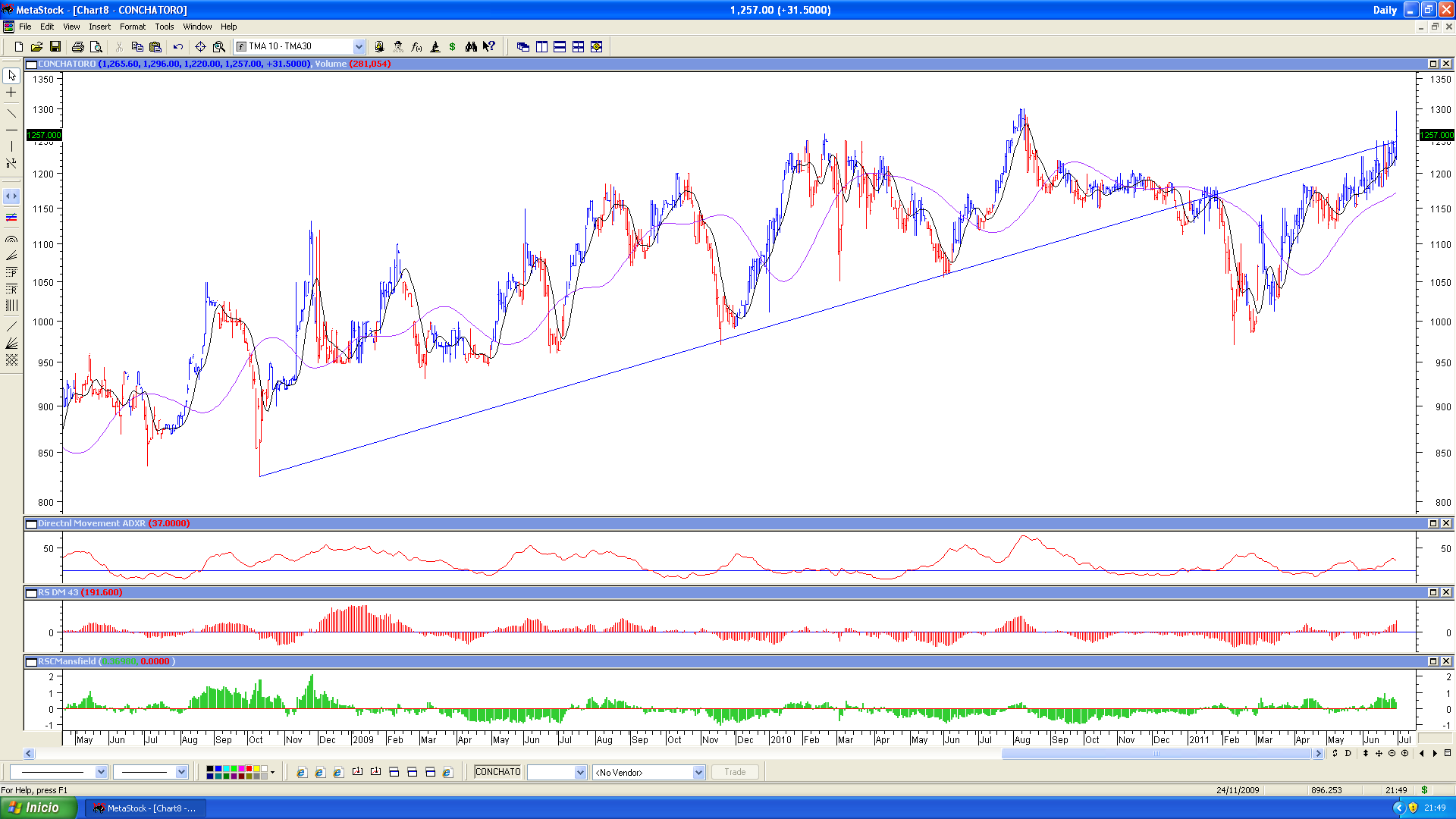 si lo abres hasta el 2010, verás tendencia de más largo plazo la que el precio perforó en enero de este año y la cabeceó hace poco.