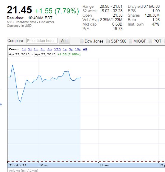 abrió con GAP subiendo, ahora se mantiene en 21.5 USD/stock aproximadamente.