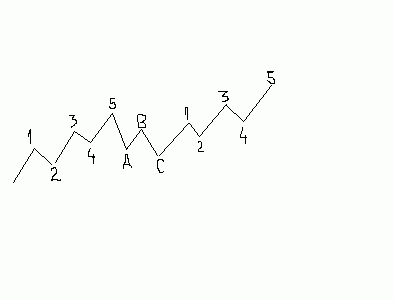 2) después de un movimiento de 5 puntas viene un movimiento de corrección de 3 puntas en dirección contraria a la tendencia