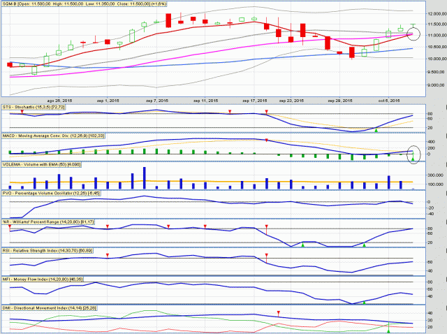 Aunque recién comienza la función de hoy, con las transacciones que hay miren que se ve bonito el gráfico: el MACD dando señal de entrada (nunca se equivoca) y prácticamente cruzándose hoy (otra señal de entrada)