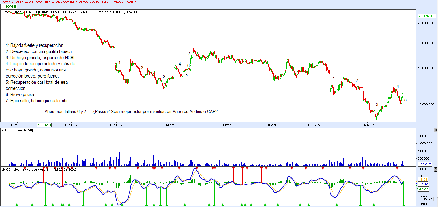 Sí, es cierto, uno ve a andina y le parece todo lo demás malo o al menos no tan bueno, pero ya ha subido bastante SQM y no ha bajado aún. Sigo pensando que llegará a esos 116XX o 11700 aprox, al menos.