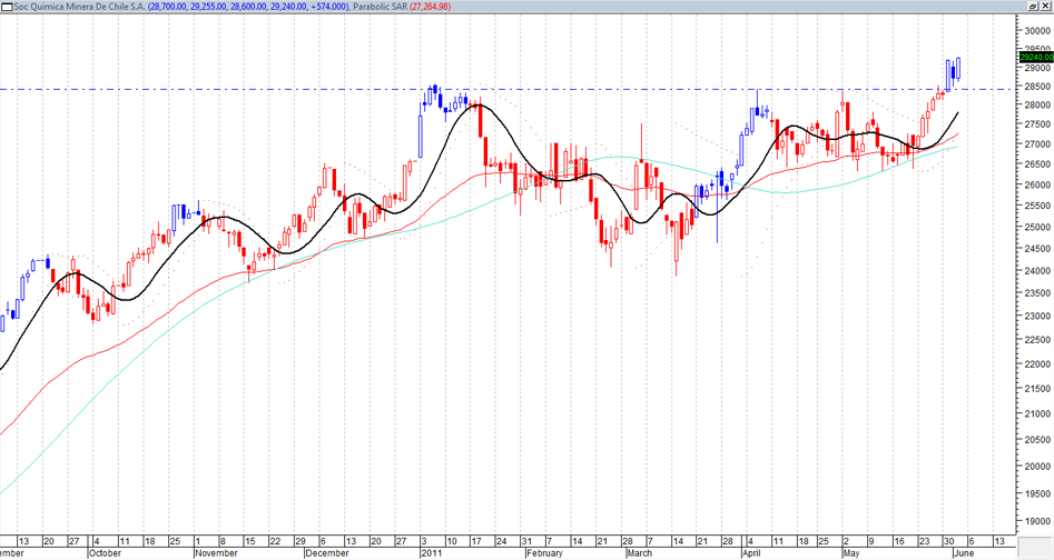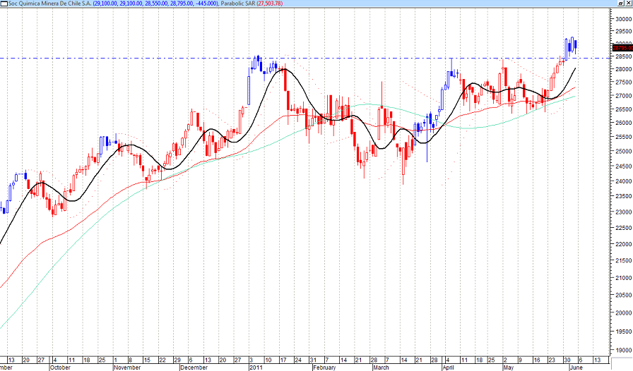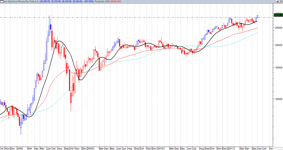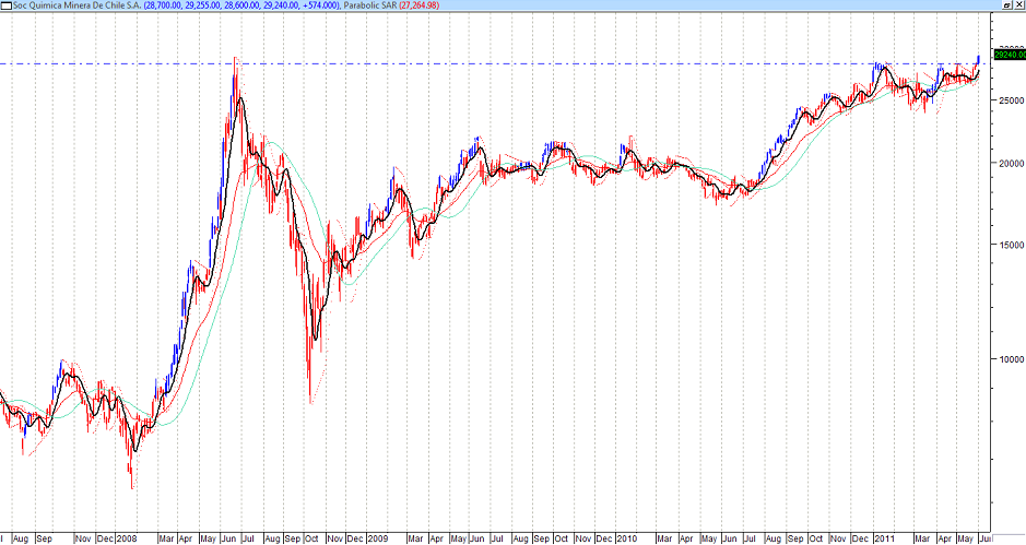 Yo miro los dos, ajustados y sin ajustar.... he tenido muchas dudas usar gráficos ajustados en Chile y más teniendo en cuenta que los grandes compradores son las AFP y al armar las carteras ex ante y ex post no usan valores ajustados. Si miramos por gráfico ajustado por dividendos se rompe con los 28.500 y el histórico del 2008 queda en 27.000,00 aprox...