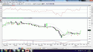 Esto es lo que te comentaba de metastock, el gráfico se ve bien, me falta establecer mejor las funciones para señales de compra pero por lo menos ahora no siento que estoy apostando como en el casino aún cuando estoy 100% liquido esperando mas indicadores para ingresar.