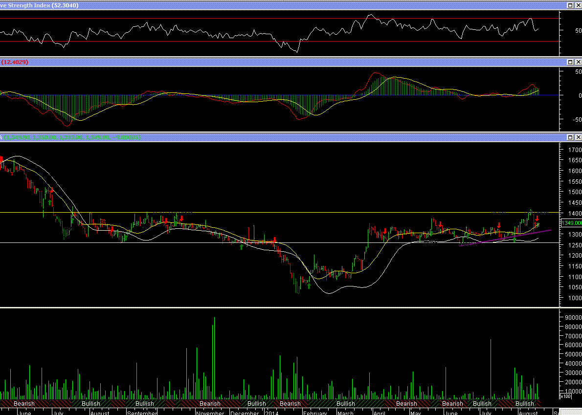 Para los que tienen paciencia, este papel da buenos frutos, de hace rato la resistencia a superar es $ 1.400.- , la sobrepaso para luego retroceder. Tomara nuevo impulso?.