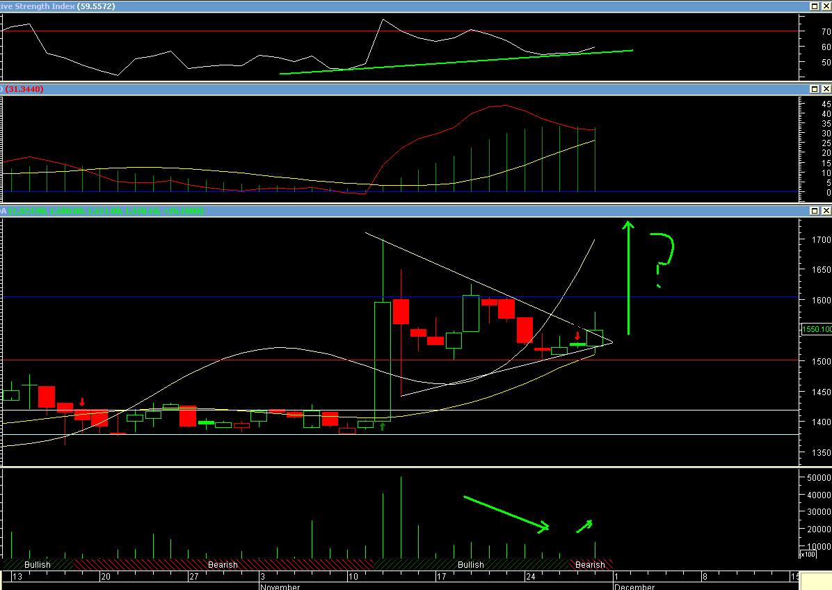 Hoy traté de vender el 50% a 1578, pero no alcancé, tenía pinta de maquillaje, esperemos que no y vamos por los 1600!
