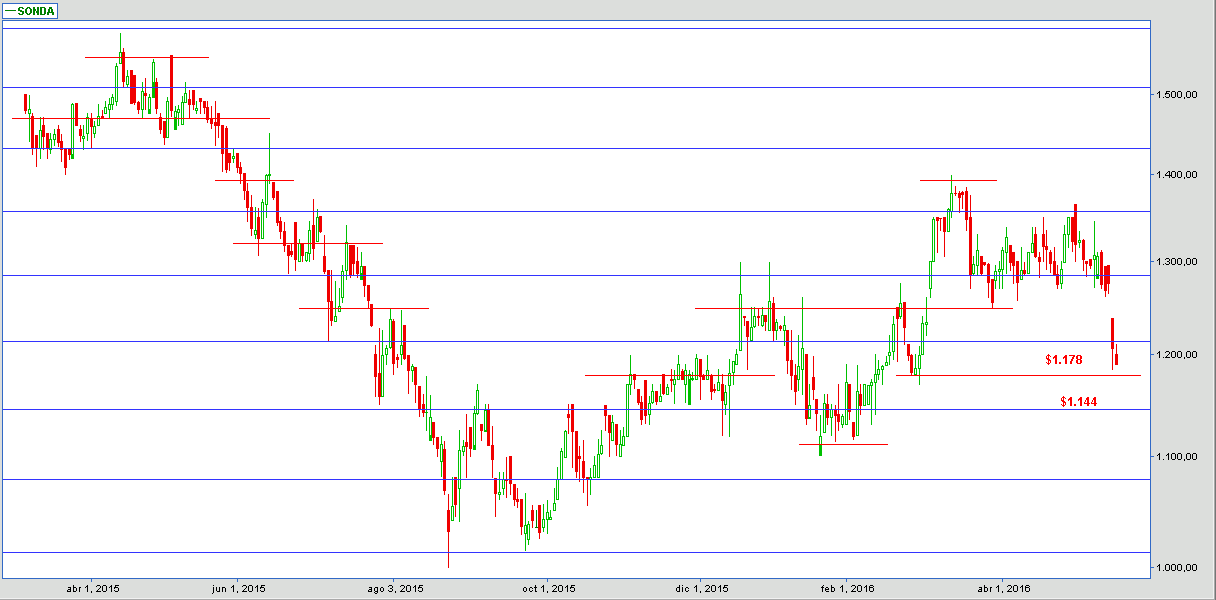 Veo dos niveles de posible soporte: $1.178, luego $1.144.