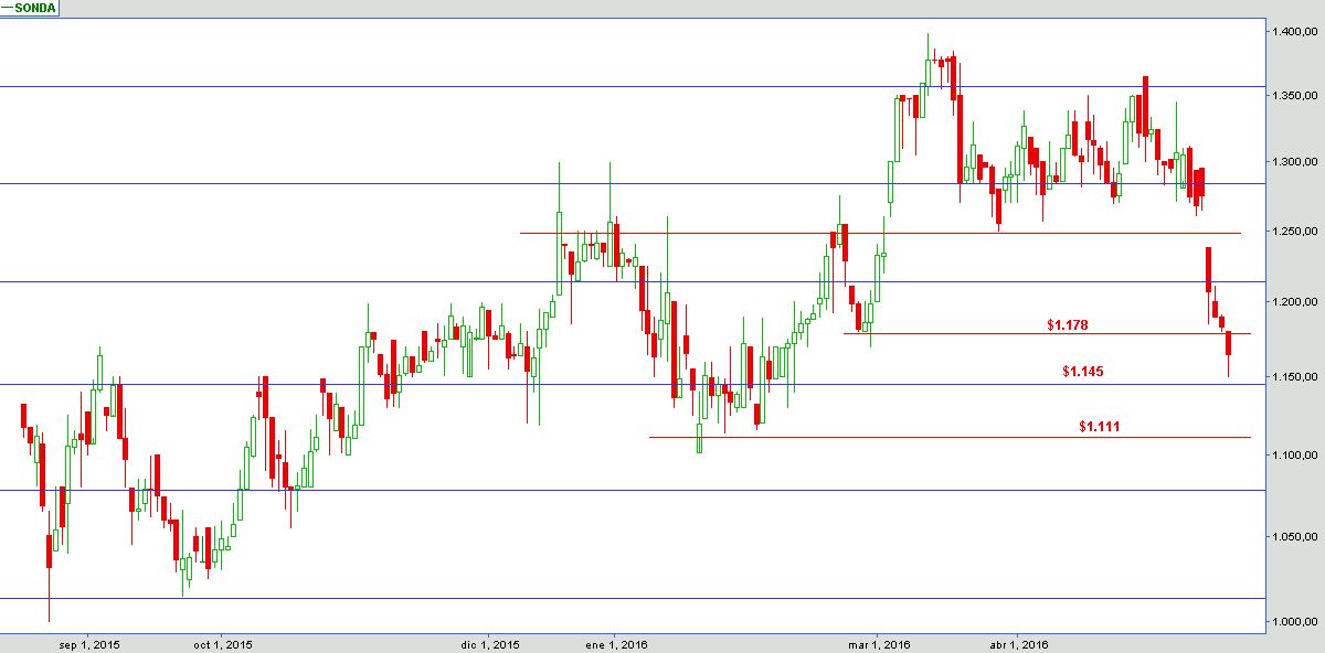 Pasó de largo los $1.178, pareciera ir en busca de los $1.144.
