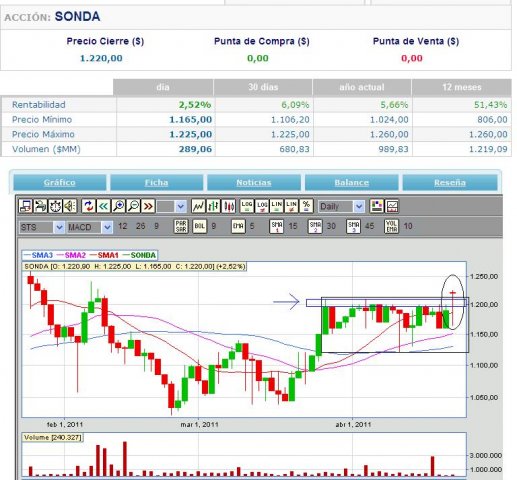 Hace días que se advertía operando en una misma zona, con una lateralidad de manual y un área de resistencia bastante clara. Pero el volumen que acompañó esta alza debe llevar a ser cautos en las expectativas, al igual que el nivel de oscilación previa. Con todo, se ve interesante, y no deja de tener respaldo en un mercado que rompió su tendencia a la baja y un sector que lidera las subidas.