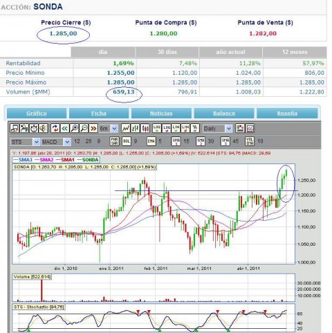 Si el volumen es lo que faltaba, ya no hay dudas de que a esta hora Sonda es una certeza: mas de $ 3 mil millones en transacciones hoy.