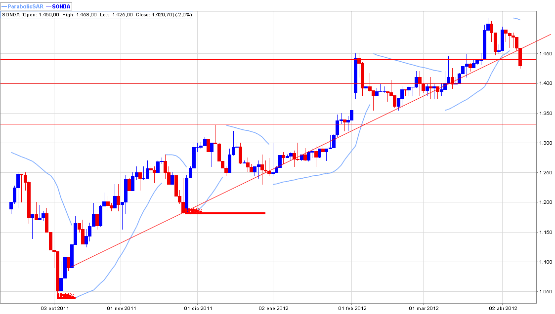SONDA marcó un cambio de tendencia de su Parabolic SAR hoy, hacía descendente. ¿Ideas, comentarios?