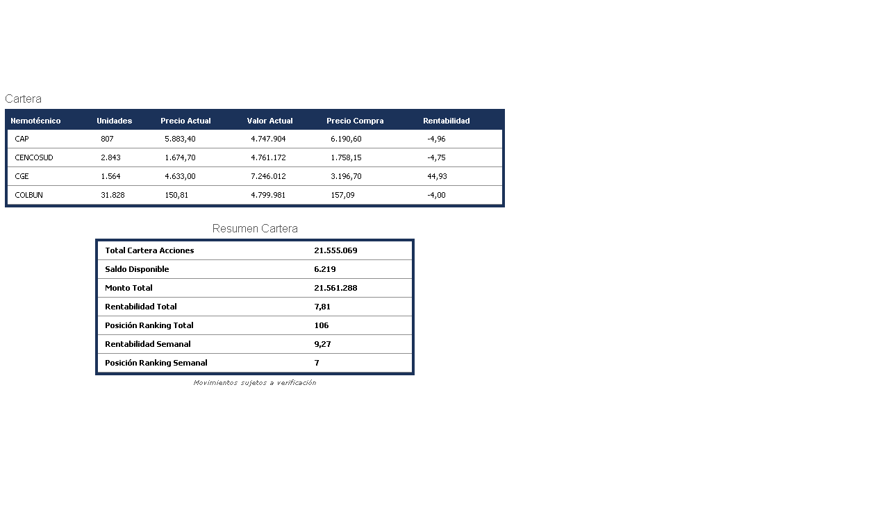 Nemotécnico Unidades Precio Actual Valor Actual Precio Compra Rentabilidad