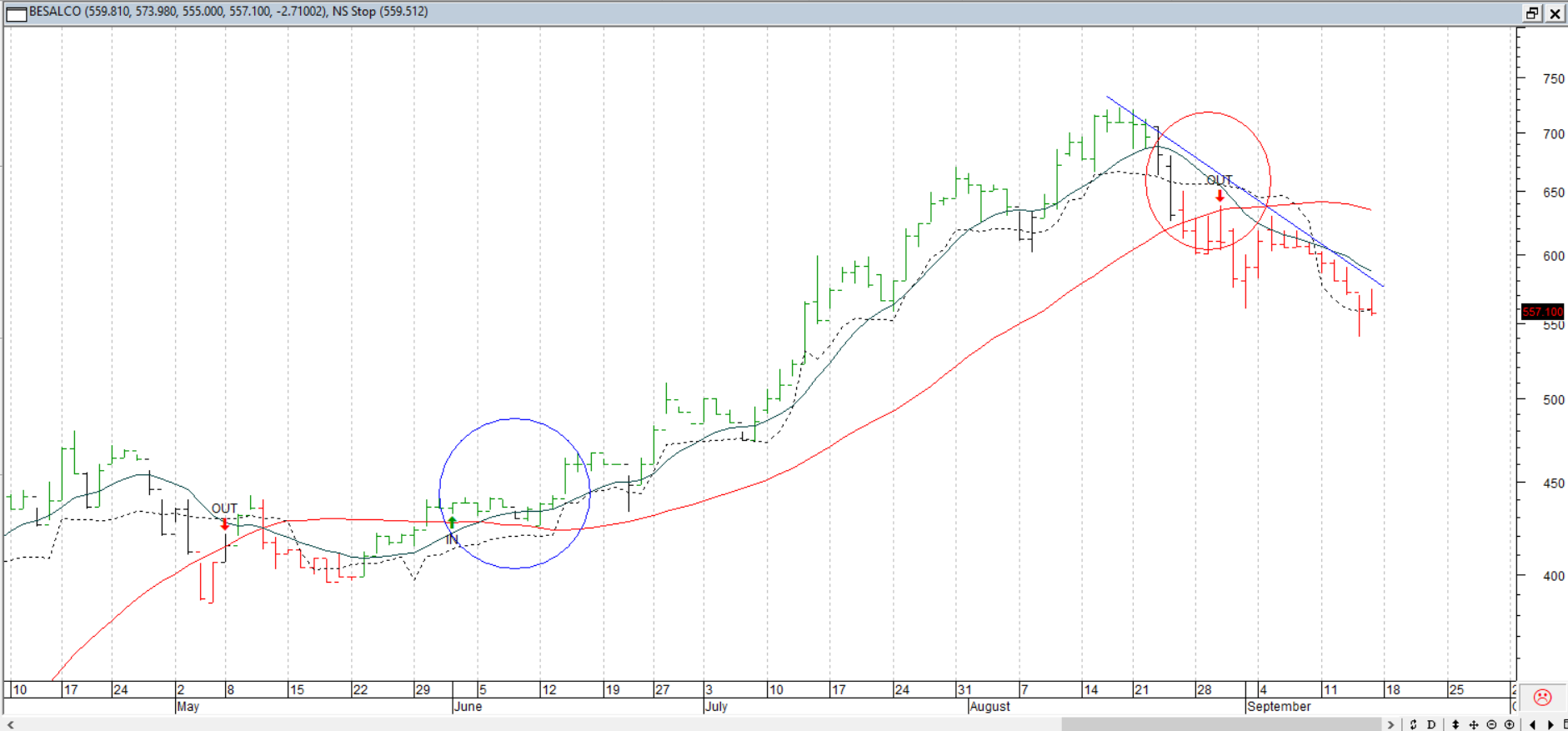 El tema está en reconocer tendencias de este tipo y no soltarlas, pero además que el sistema nos saque de los cachos. Ahora un ejemplo gráfico con Besalco
