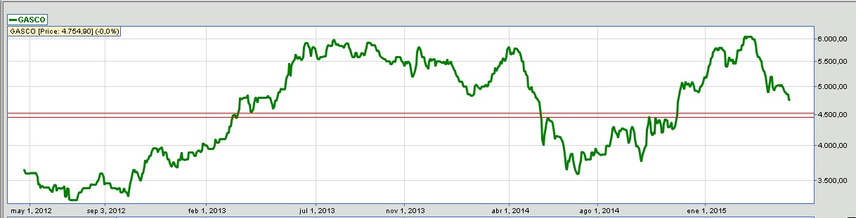Te aclaro que soy puro AT por lo tanto tengo unas dudas dime si te entendi mal........la idea seria comprar GASCO a este valor que según leo esta "barata" y dejarla todo el año esperando para ganar ese 4-6% de dividendo más lo que se valorizo la acción???