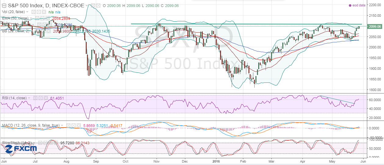 Muy cerca de llegar a resistencia de 2105 con la posibilidad de llegar a zona de sobrecompra de RSI, además de estar en banda superior de bollinger para posible ajuste.