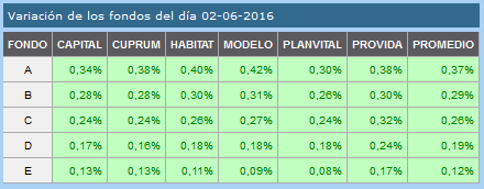 Variación AFPs 02.06.2016 en todos sus Fondos.