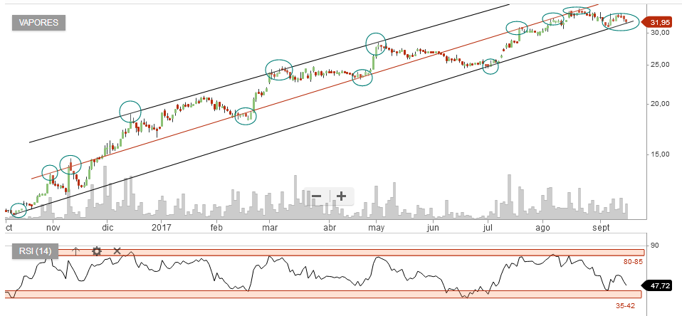 Vapores a esta hora subiendo con volumen (+3,17%, $2.888 millones) y por el momento confirmando ruptura de LT de corto plazo. Veamos cómo cierra.