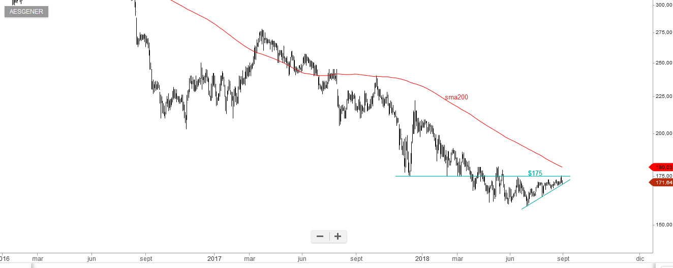 De superar la resistencia, un poco más arriba (178-180) se encontraría con la SMA200 como indica Mastropiero. Está en zona interesante, para tenerla en la mira.