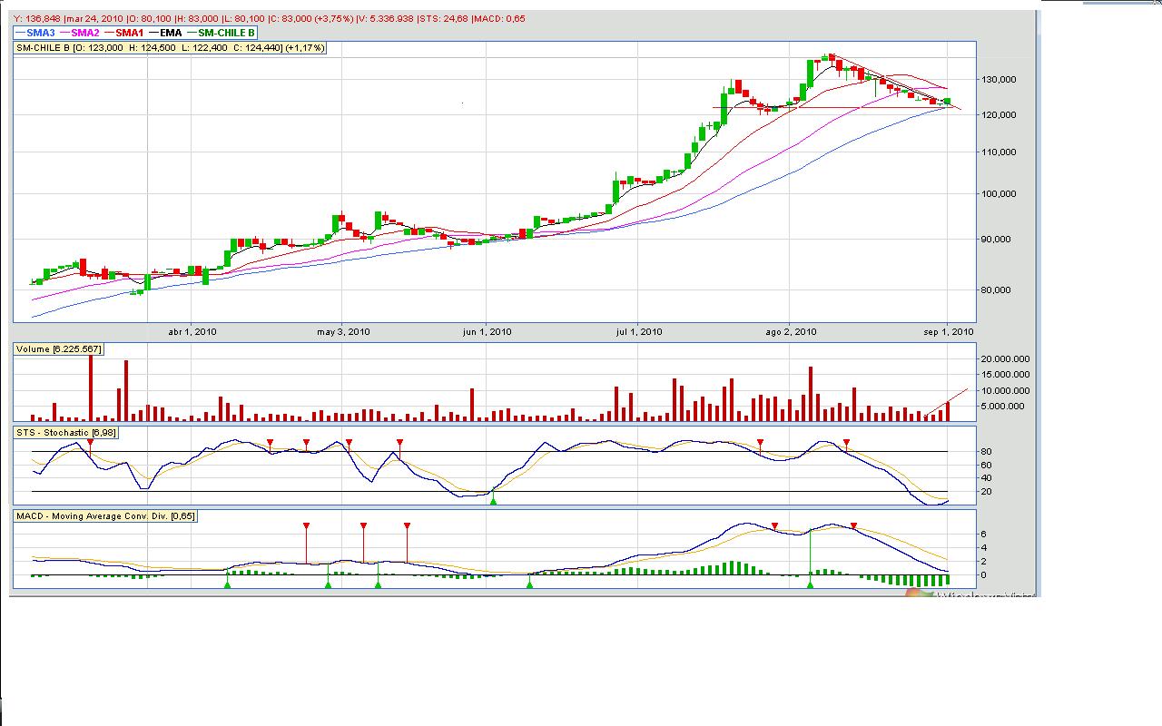Observaciones:Señal de entrada el dia 31/08/2010 (Buen Volumen y cruce de Medias (15,5),confirmada en el dia de hoy ,IPSA +,DJ+..etc..etc
