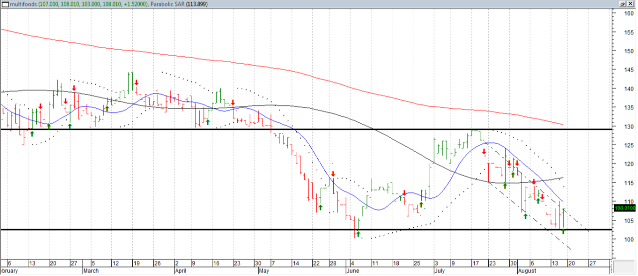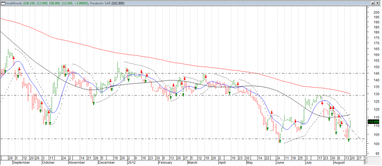 Interesante lo que hace multi, rompe bandera alcista por el momento... hace mínimos crecientes y rompiò una dura directriz bajista...aunque los $130 son un número q le costaría pasar... se bien...