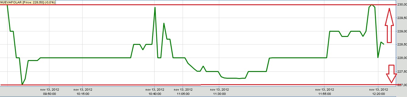 En este caso se nota que no hay mucho interes por el papel, esta como a la "espera" de algo, hay mucha indecision y muy poco volumen en comparacion con los ultimos dias.